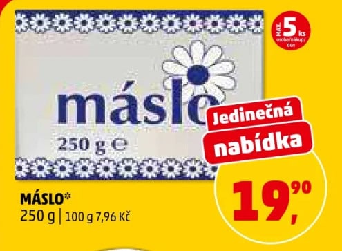Mlékárny aktuálně prodávají řetězcům máslo i bez marží, neboť mají velké přebytky, ale podle našich informací cenu másla dále stlačují řetězce. Marži jim totiž zákazník může vrátit při koupi jiných výrobků v rámci nákupu. Pro lepší představu jsme se podívali do Zprávy o trhu s mlékem a mlékárenskými výrobky Státního zemědělského intervenčního fondu, zde se průměrná cena, za kterou mlékárny v listopadu 2025 prodávaly kilogram másla ve spotřebitelském 250 g balení, dostala na 185,83 Kč/kg. 250 g máslo tedy mlékárny prodávaly za cca 46 Kč.