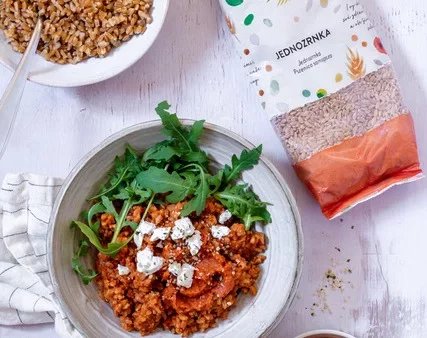 Jednozrnka s omáčkou romesco