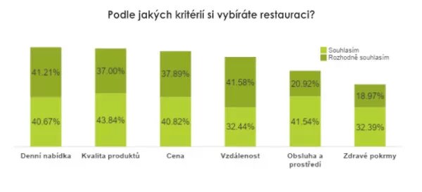 Podle jeho výsledků je nabídka zdravých pokrmů vůbec nejméně častým kritériem, podle kterého si obvykle vybíráme restauraci. Mnohem důležitější je poměr ceny a kvality nebo fyzická vzdálenost podniku.