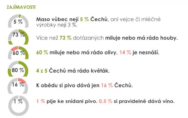 Z více než 4500 odpovědí vyplynulo, že Češi zdravost pokrmu hodnotí zejména na základě čerstvosti ingrediencí (85 %) a množství salátů či zeleniny (72 %). V mnohem menší míře jako zdravé vnímají menší porce (25 %) nebo vegetariánskou a veganskou stravu (23 %). Oproti zbytku Evropy se navíc při rozhodování, kde a co jíst, mnohem méně řídí výživovou hodnotou jídel.