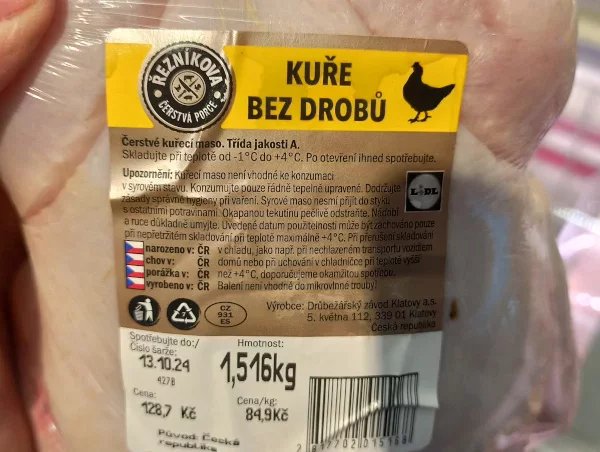 Výrobce: Drůbežářský závod Klatovy (vždy jde o české kuřecí)
