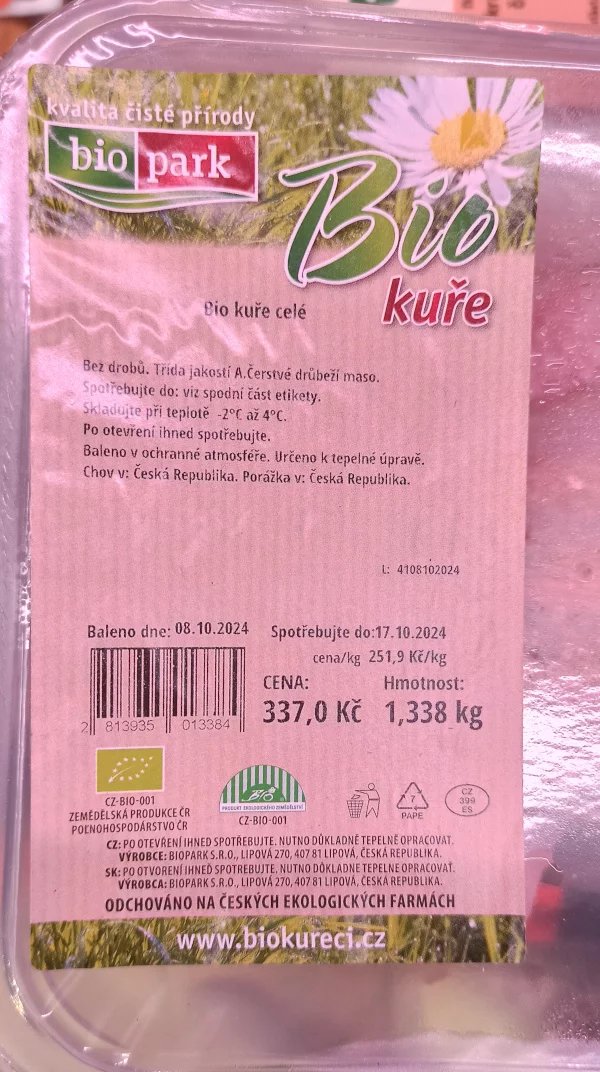 Doba výkrmu: „Kuřata rostou přirozeně a téměř 3× déle než brojleři z komerčních chovů,“ píše na webu výrobce Biopark. Přesný počet dní uveden není. (běžně 35 dní)