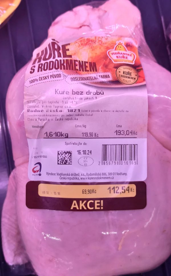- je také povinnost uvést u čerstvého drůbežího masa celkovou cenu a cenu za hmotnostní jednotku (míněno Kč/kg).