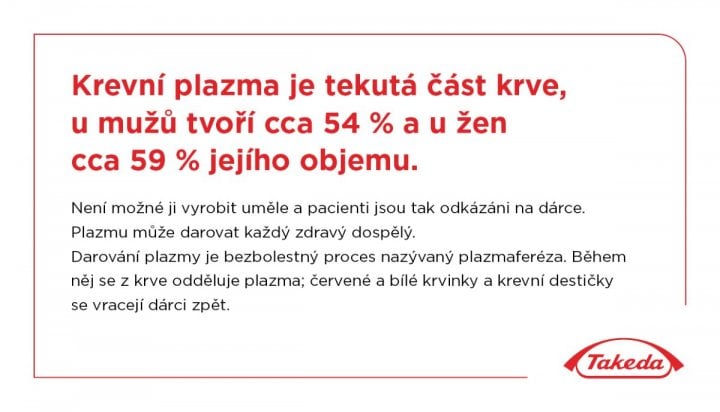 „Léky z krevní plazmy těmto lidem umožňují vracet se do běžného života, chodit do školy nebo do práce, sportovat. Nic z toho by pro ně jinak možné nebylo,“ vysvětluje Barbora Balzerová z farmaceutické společnosti Takeda.